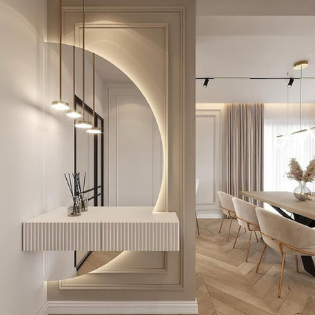 Creamos propuestas en 3D para que veas cómo quedará tu espacio antes de iniciar, y revestimos tus paredes con papel de colgadura, wall panels y texturas que aportan calidez, elegancia y estilo.